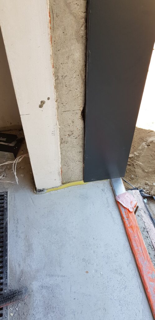 Do montażu bramy powinny być tynki w glifach w środku. Nieraz i na zewnątrz w przypadku ścian bardzo krzywych. Wylewka powinna się kończyć przed budynkiem (o grubość elewacji) tak by konstrukcja jak i prowadnice stały już na ostatecznej wylewce. Na późniejszym etapie brak jest możliwości regulacji. Jakakolwiek próba regulacji może spowodować niezgrywanie się lini wypełnienia.