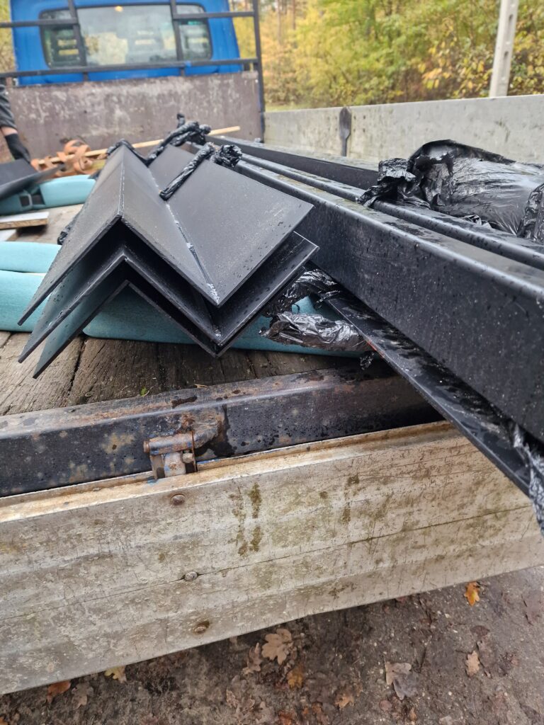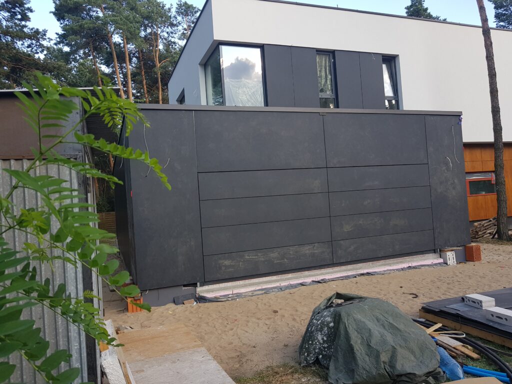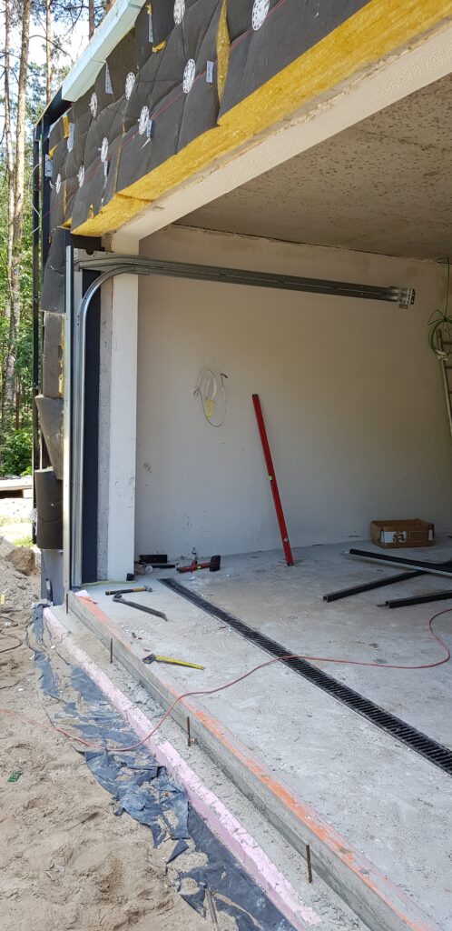Poniżej również bramy elewacyjne które zostały zamontowane w otworze ale nie zlicowane z elewacją. Wykończenie bram ma być takie samo jak na ścianie ale inwestorowi nie zależało na jednolitej płaszczyźnie.